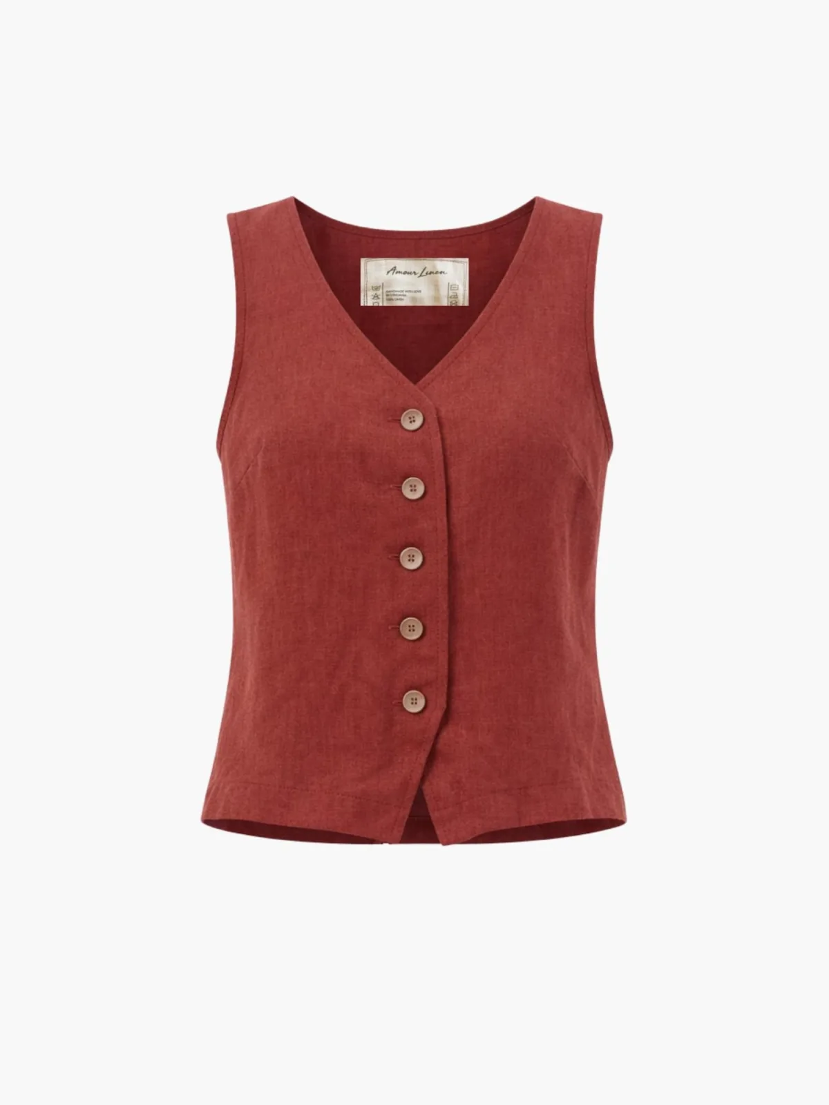 AmourLinen Bodywarmer ‘Greta’ donkerrood