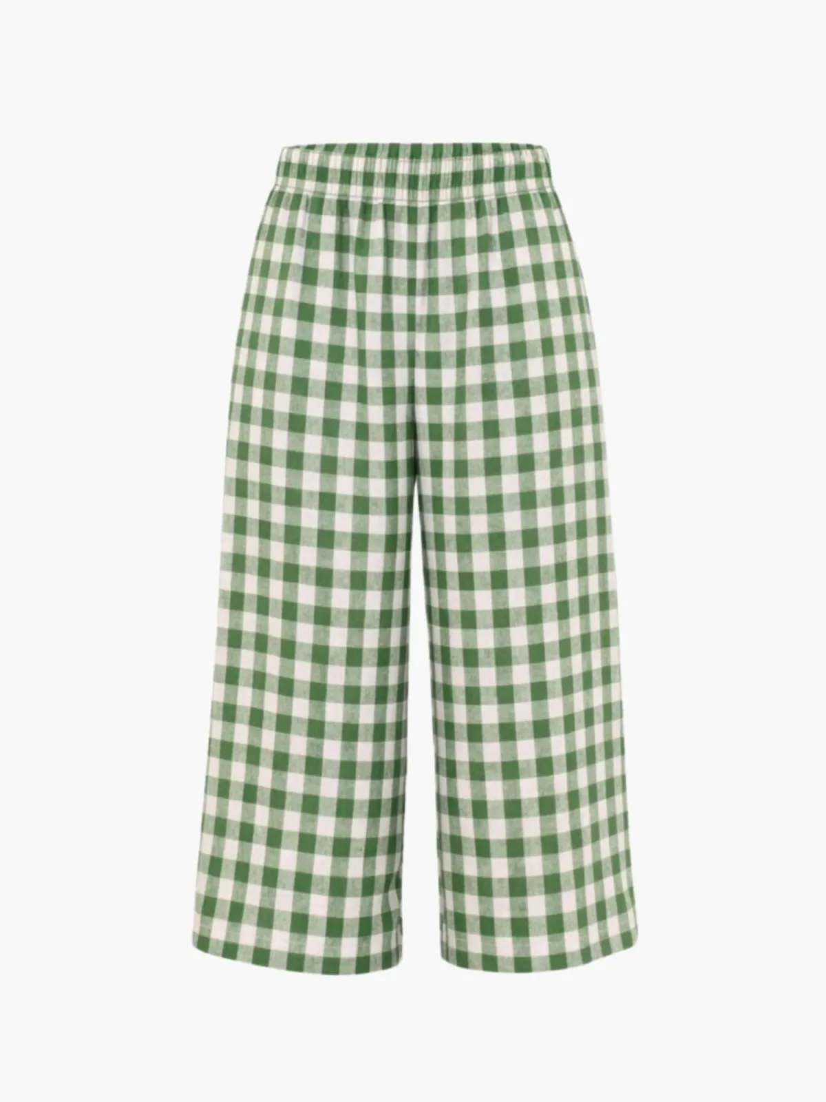 Materiaal: Linnen; Motief: Geruit; Details: Plissé; Lengte: 3/4 lengte; Pasvorm: Loosefit; Taillehoogte: High waist