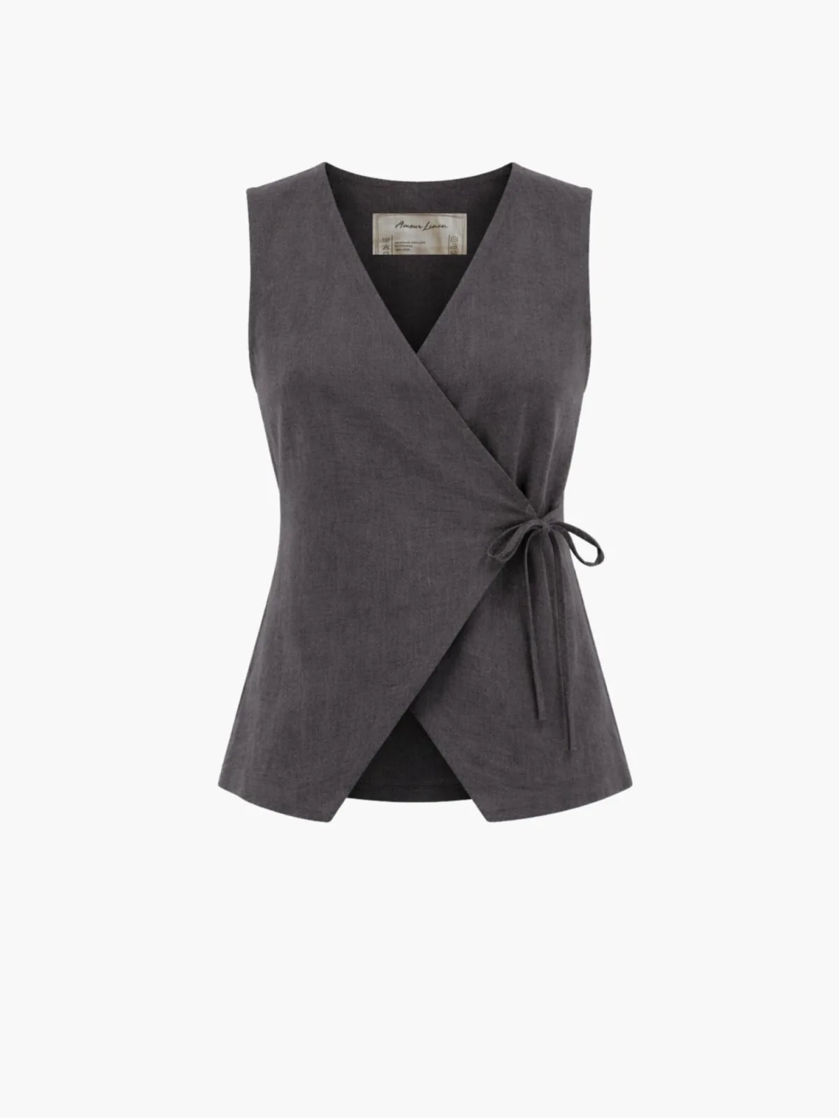 Materiaal: Linnen; Halstype: V-hals; Motief: Effen; Soort bandjes: Normale bandjes; Details: Wikkel design; Pasvorm: Normale pasvorm; Armlengte: Mouwloos; Lengte: Normale lengte