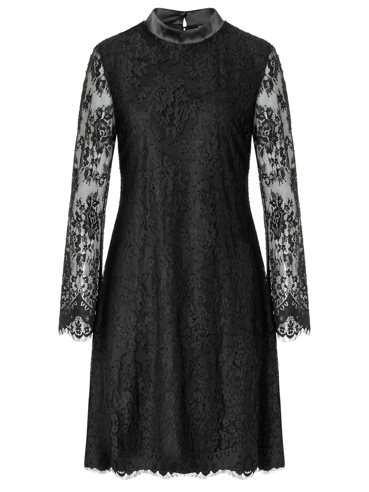 Design: A-lijn, Keyholesluiting, Staande kraag, Elastische inserts; Type sluiting: Slip; Halstype: Opstaande kraag; Details: Kant; Extra's: Op staal naden; Lengte: Kort/mini; Snit: Uitlopend; Pasvorm: Normale pasvorm; Armlengte: Lange mouw