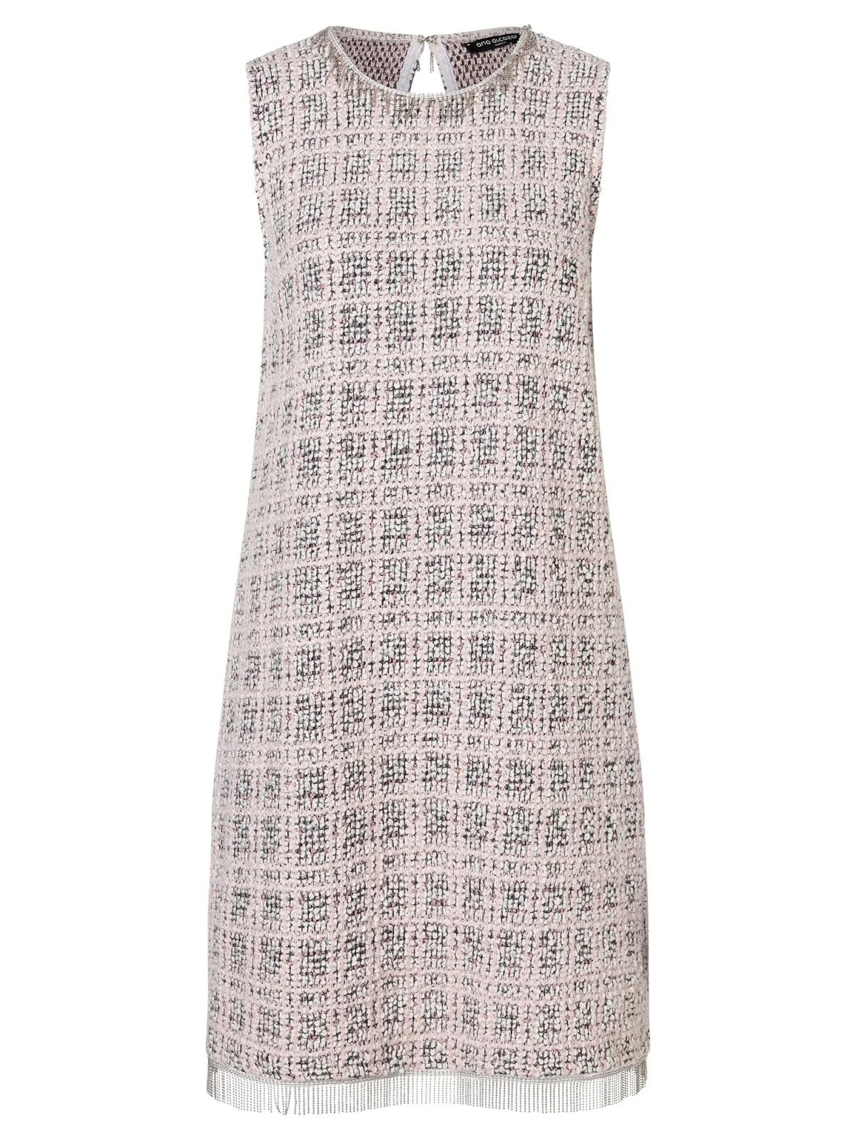 Design: Gevoerde zoom/rand, A-lijn, Gefranjerde zoom, Rug inkeep, Knop sluiting; Type sluiting: Knoopsluiting; Halstype: Ronde hals; Motief: Geruit; Soort bandjes: Brede bandjes; Details: Franjes; Extra's: Op staal naden; Lengte: Knielengte; Pasvorm: Normale pasvorm; Armlengte: Mouwloos