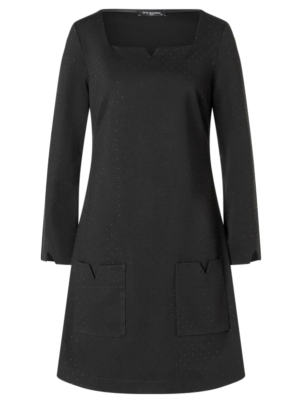 Design: A-lijn, Figuurnaden, Rechte manchetten; Materiaal: Viscose; Halstype: Carréhals; Motief: Effen; Details: Sierstenen; Extra's: Op staal naden; Lengte: Kort/mini; Pasvorm: Losse pasvorm; Armlengte: Lange mouw