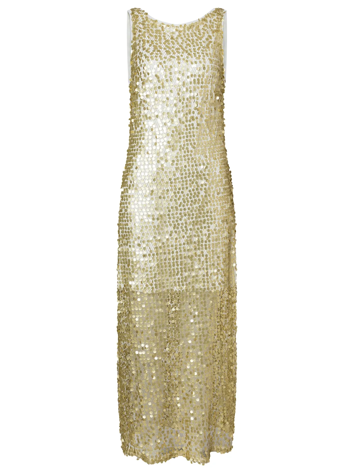Design: Figuurnaden, Zijdelingse inkepingen; Halstype: Ronde hals; Soort bandjes: Normale bandjes; Details: Pailletten; Extra's: Mesh, Glitterend; Lengte: 7/8 lengte; Snit: Recht; Pasvorm: Normale pasvorm; Armlengte: Mouwloos