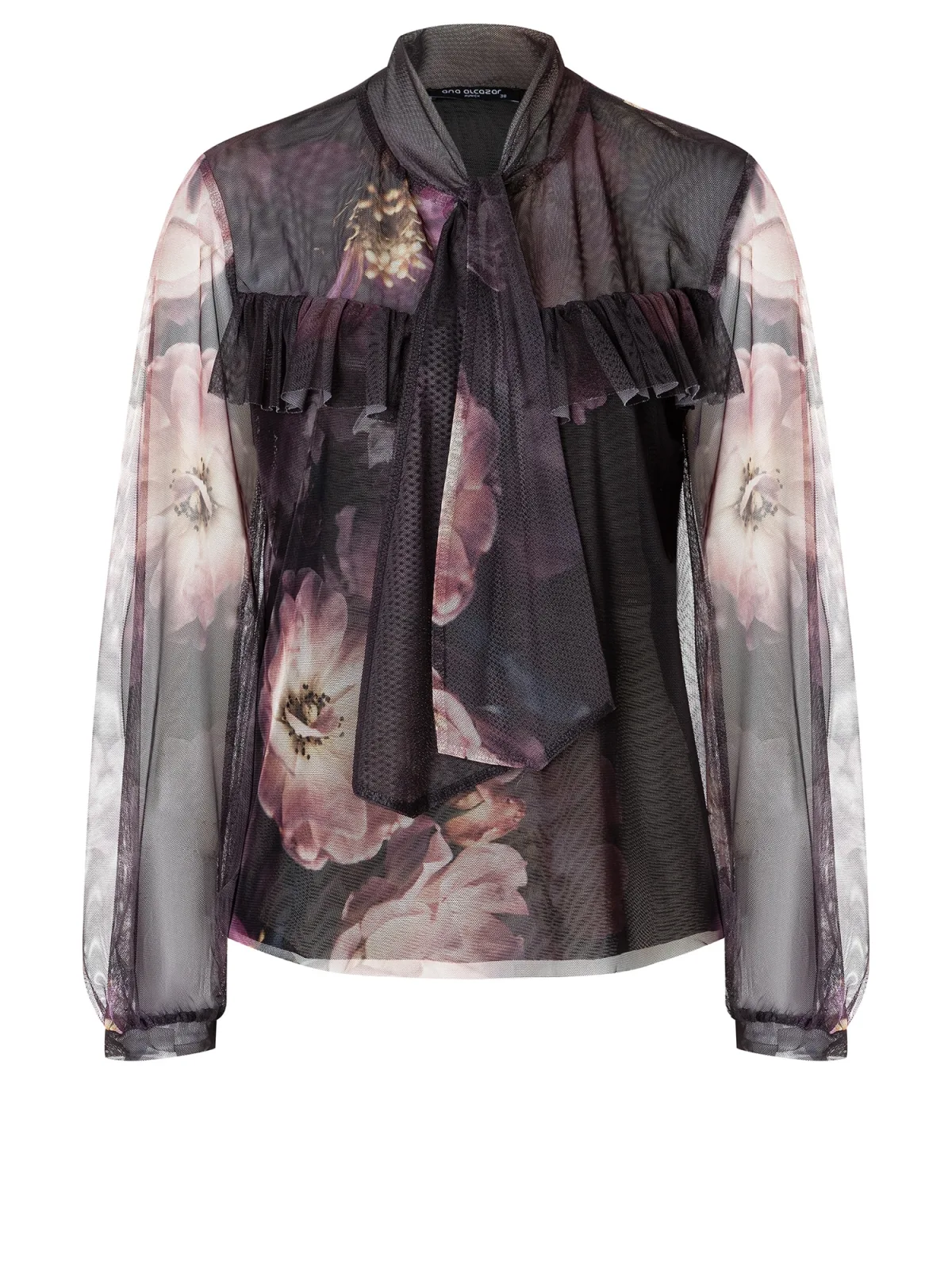 Blouse type: Wijde blouse; Design: Pofmouwen, Om te knopen/binden; Motief: Bloemenprint; Details: Ruches; Extra's: Licht transparant; Pasvorm: Losse pasvorm; Armlengte: Lange mouw; Lengte: Normale lengte