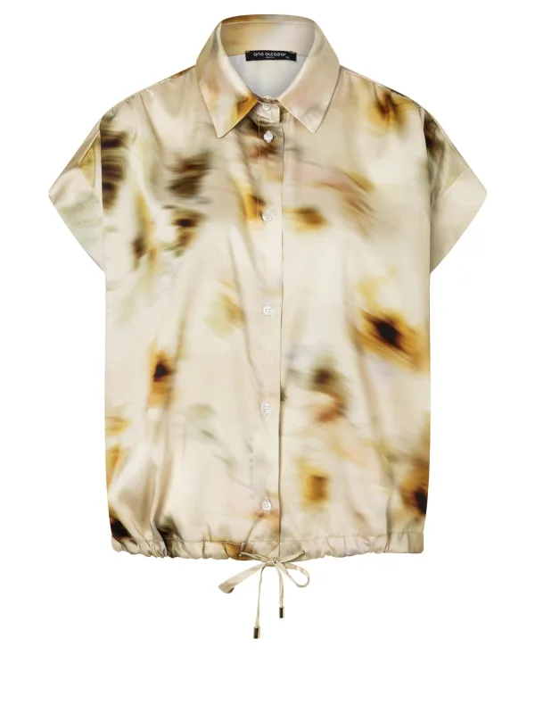 Blouse type: Wijde blouse; Design: Gesneden mouw; Materiaal: Satijn; Motief: Kleurverloop; Kraag: Kentkraag; Details: Gedrapeerd; Pasvorm: Wijde pasvorm; Armlengte: Kwartmouw; Lengte: Normale lengte