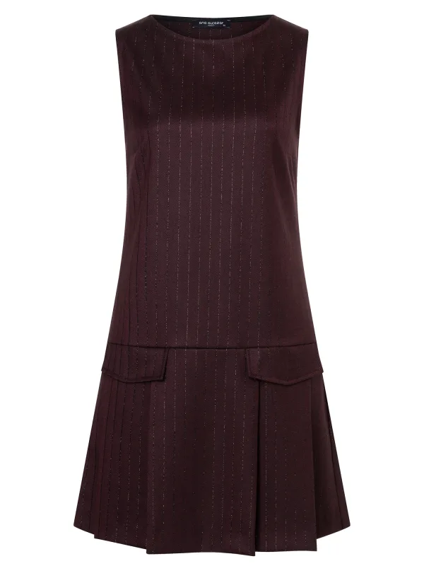 Design: Figuurnaden, Opzet-/flapzak; Halstype: Ronde hals; Motief: Krijtstrepen; Soort bandjes: Brede bandjes; Details: Plooien; Extra's: Glitterend, All-over patroon; Lengte: Kort/mini; Pasvorm: Normale pasvorm; Armlengte: Mouwloos