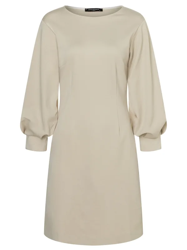 Design: Recht model, Pofmouwen; Materiaal: Viscose; Halstype: Ronde hals; Motief: Effen; Extra's: Gladde stof, Voelt zacht aan; Lengte: Knielengte; Pasvorm: Slanke pasvorm; Armlengte: Lange mouw