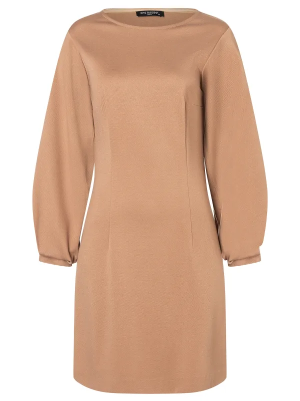 Design: Gevoerde zoom/rand, Pofmouwen, Getailleerd model; Halstype: Ronde hals; Motief: Effen; Extra's: Op staal naden; Lengte: Knielengte; Pasvorm: Normale pasvorm; Armlengte: Driekwart mouw