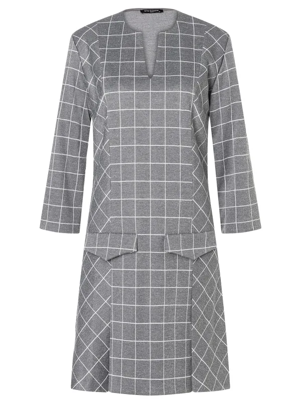 Design: Flare, Figuurnaden, Opzet-/flapzak; Materiaal: Viscose; Halstype: Uitgesneden hals; Motief: Geruit; Details: Plooien; Extra's: All-over patroon; Lengte: Knielengte; Pasvorm: Losse pasvorm; Armlengte: Driekwart mouw