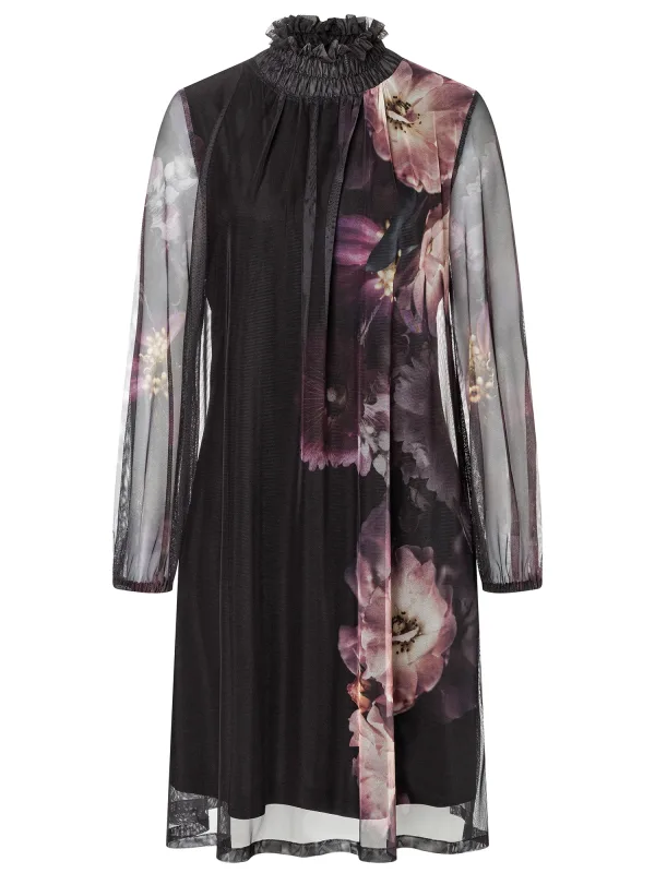 Design: Pofmouwen; Type sluiting: Knoopsluiting; Halstype: Opstaande kraag; Motief: Bloemenprint; Lengte: Knielengte; Pasvorm: Losse pasvorm; Armlengte: Lange mouw