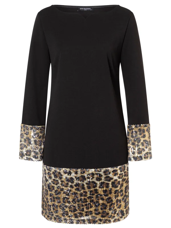 Design: Figuurnaden, Rechte manchetten; Halstype: Uitgesneden hals; Motief: Dierenprint; Lengte: Knielengte; Pasvorm: Losse pasvorm; Armlengte: Lange mouw