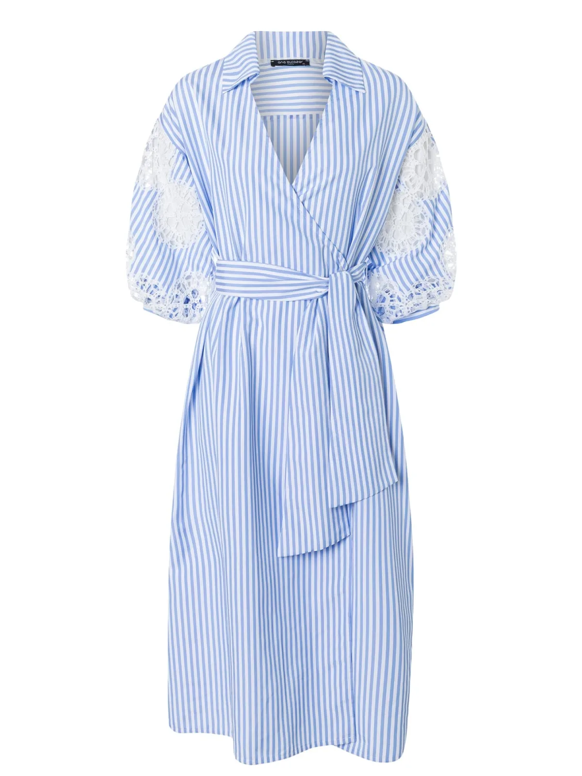 Design: Gevoerde zoom/rand, Met riem; Halstype: Overhemdkraag (klassiek); Motief: Gestreept; Details: Borduursels, Wikkel design; Extra's: All-over patroon; Lengte: Lang/maxi; Pasvorm: Normale pasvorm; Armlengte: Driekwart mouw