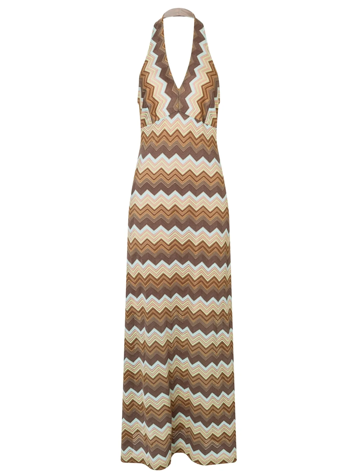 Design: Figuurnaden; Halstype: V-hals; Soort bandjes: Haltermodel; Extra's: All-over patroon; Lengte: Lang/maxi; Pasvorm: Normale pasvorm; Armlengte: Mouwloos