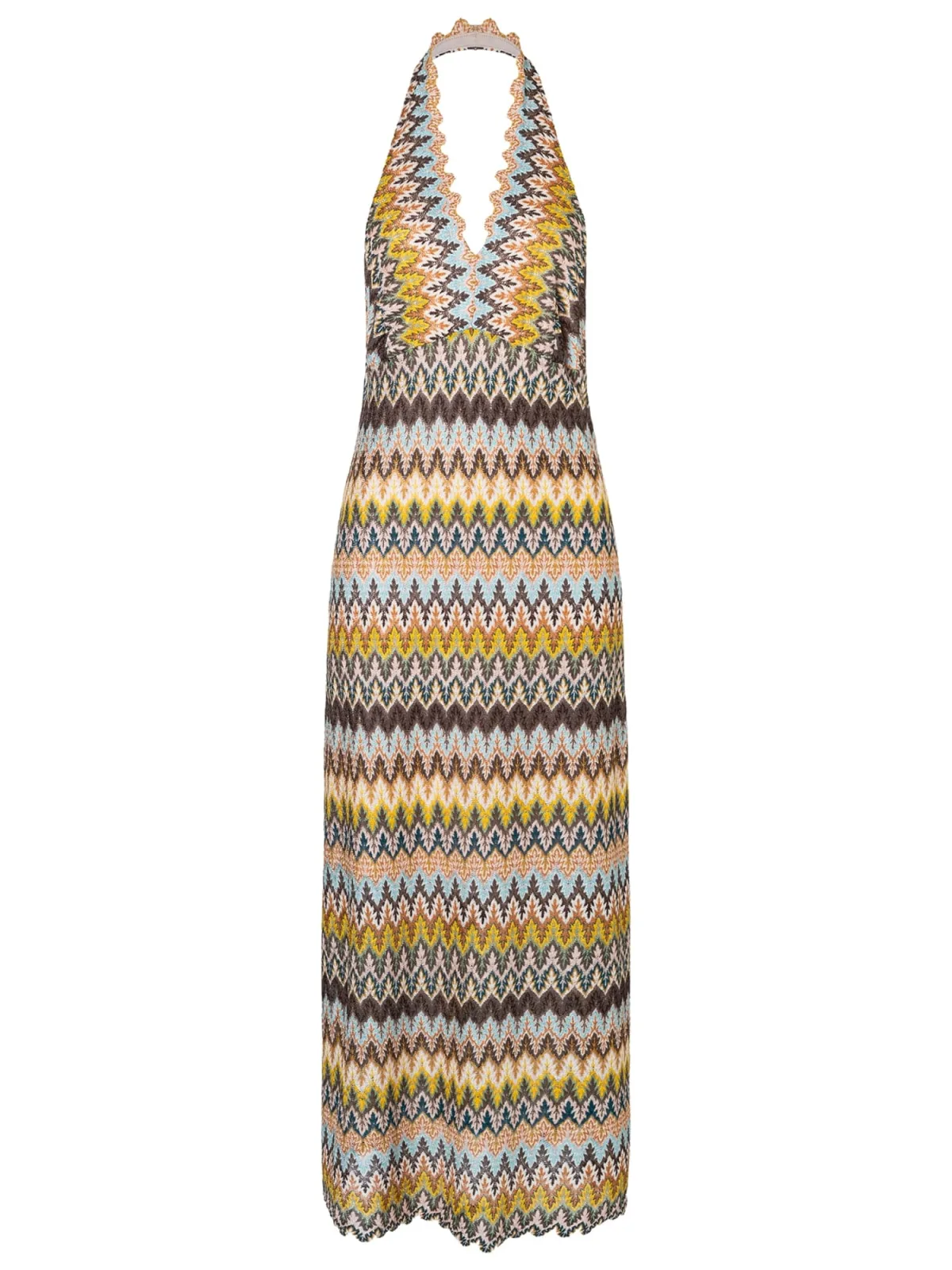 Design: Figuurnaden; Materiaal: Knitwear; Soort bandjes: Haltermodel; Extra's: All-over patroon; Lengte: 7/8 lengte; Pasvorm: Aansluitende pasvorm; Armlengte: Mouwloos