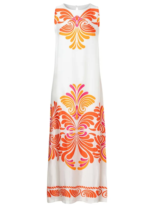 Design: Figuurnaden; Type sluiting: Knoopsluiting; Halstype: Ronde hals; Motief: Drukke print; Soort bandjes: Brede bandjes; Details: Cut-outs; Extra's: All-over patroon; Lengte: 7/8 lengte; Pasvorm: Normale pasvorm; Armlengte: Mouwloos