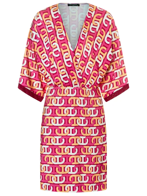 Design: Gevoerde zoom/rand; Materiaal: Jersey; Halstype: V-hals; Motief: Logoprint; Extra's: All-over patroon; Lengte: Knielengte; Pasvorm: Losse pasvorm; Armlengte: Halve mouw