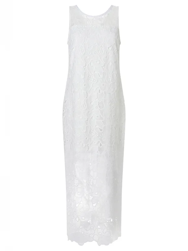 Design: Figuurnaden; Type sluiting: Knoopsluiting; Halstype: Ronde hals; Motief: Effen; Soort bandjes: Normale bandjes; Details: Kant; Extra's: Voelt zacht aan; Lengte: Lang/maxi; Pasvorm: Normale pasvorm; Armlengte: Mouwloos