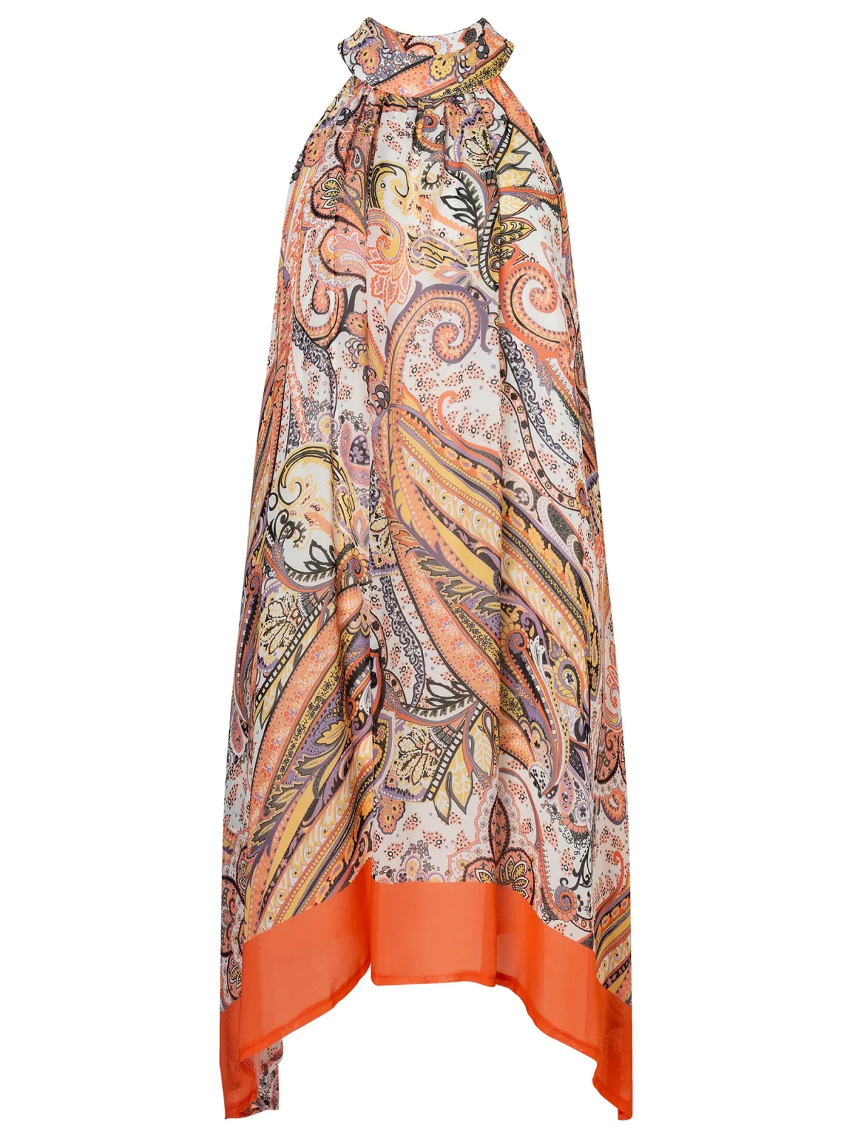 Design: Gevoerde zoom/rand, Asymmetrische zoom; Materiaal: Viscose; Soort bandjes: Haltermodel; Extra's: All-over patroon, Voelt zacht aan; Lengte: Knielengte; Snit: Recht; Pasvorm: Wijde pasvorm; Armlengte: Mouwloos