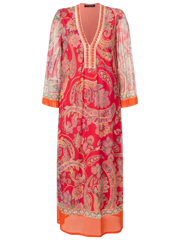 Design: Gevoerde zoom/rand; Halstype: V-hals; Motief: Paisley; Extra's: All-over patroon; Lengte: 7/8 lengte; Snit: Uitlopend; Pasvorm: Normale pasvorm; Armlengte: Lange mouw