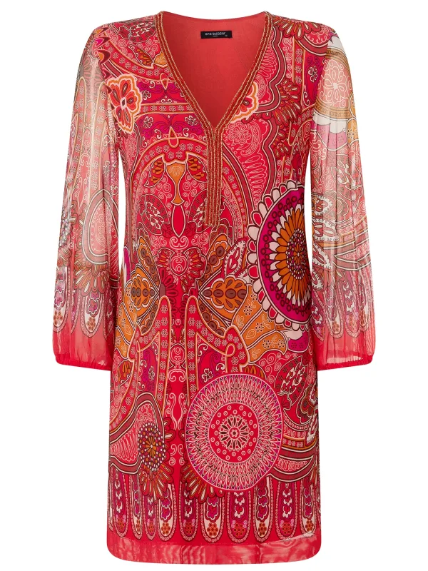 Specificaties: Ana Alcazar Jurk ‘Zevony’ rood / oranjerood / wit