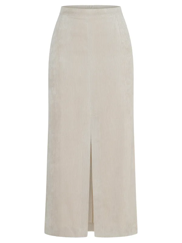 Design: Split, Zakken aan de zijkant; Type sluiting: Ritssluiting; Materiaal: Corduroy; Motief: Effen; Rokvorm: Kokerrok; Extra's: Met textuur; Lengte: 3/4 lengte; Pasvorm: Slanke pasvorm