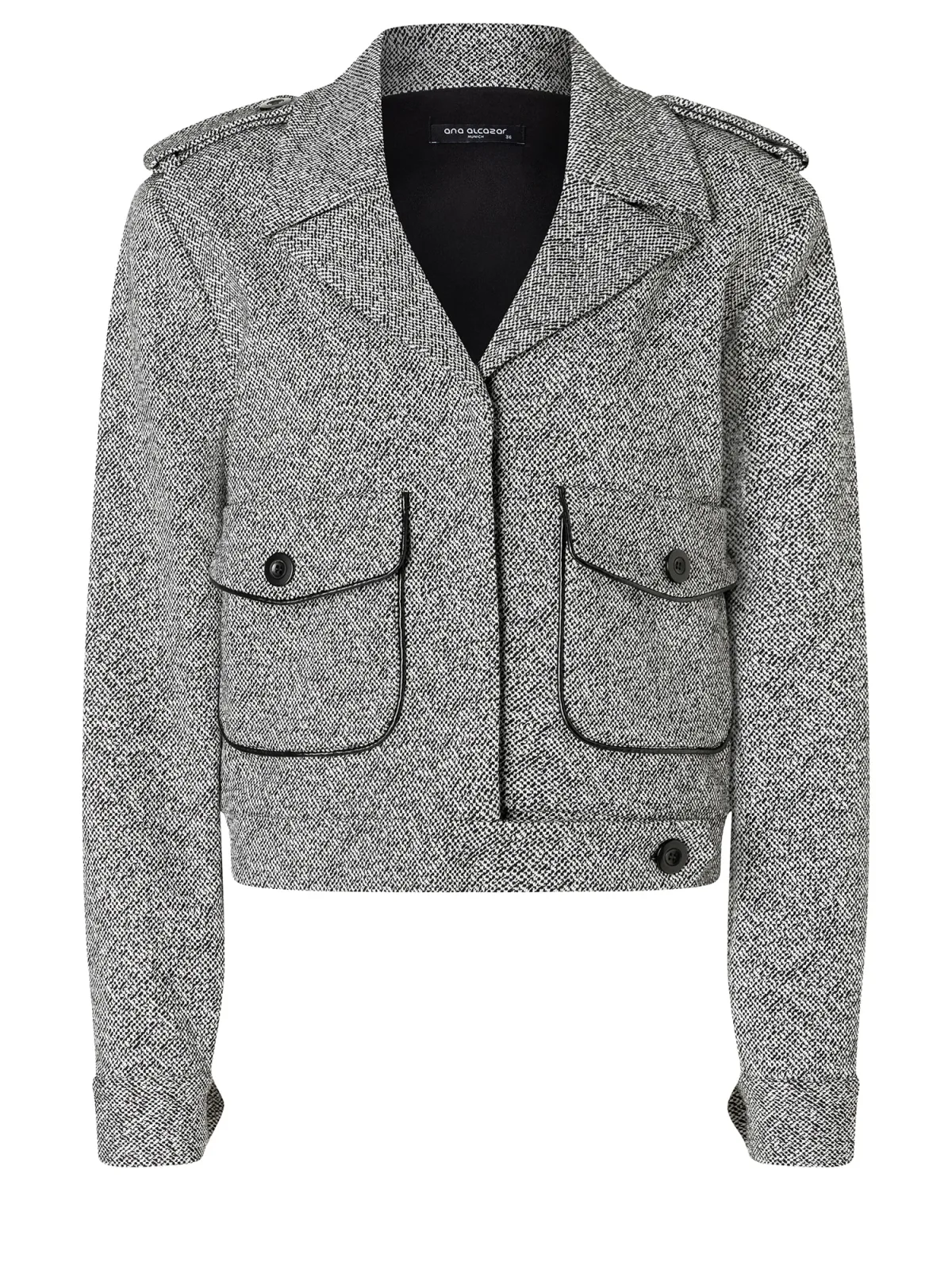 Design: 1-knoops manchetten, Rechte manchetten, Opzet-/flapzak; Type sluiting: Knoopsluiting; Voering: Licht gevoerd; Extra's: Pailletten, Label patch/label flag, Op staal naden; Pasvorm: Normale pasvorm
