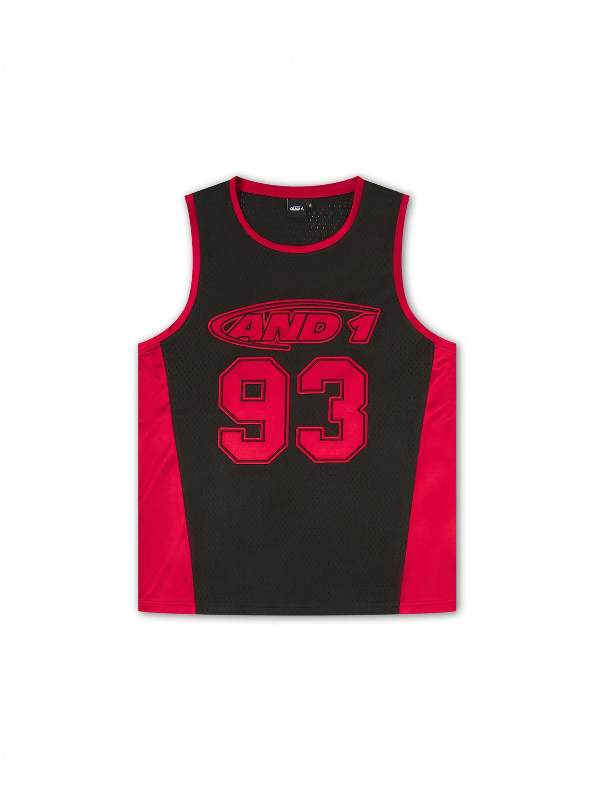 Specificaties: AND1 Shirt ’93 Airtex’ vuurrood / zwart