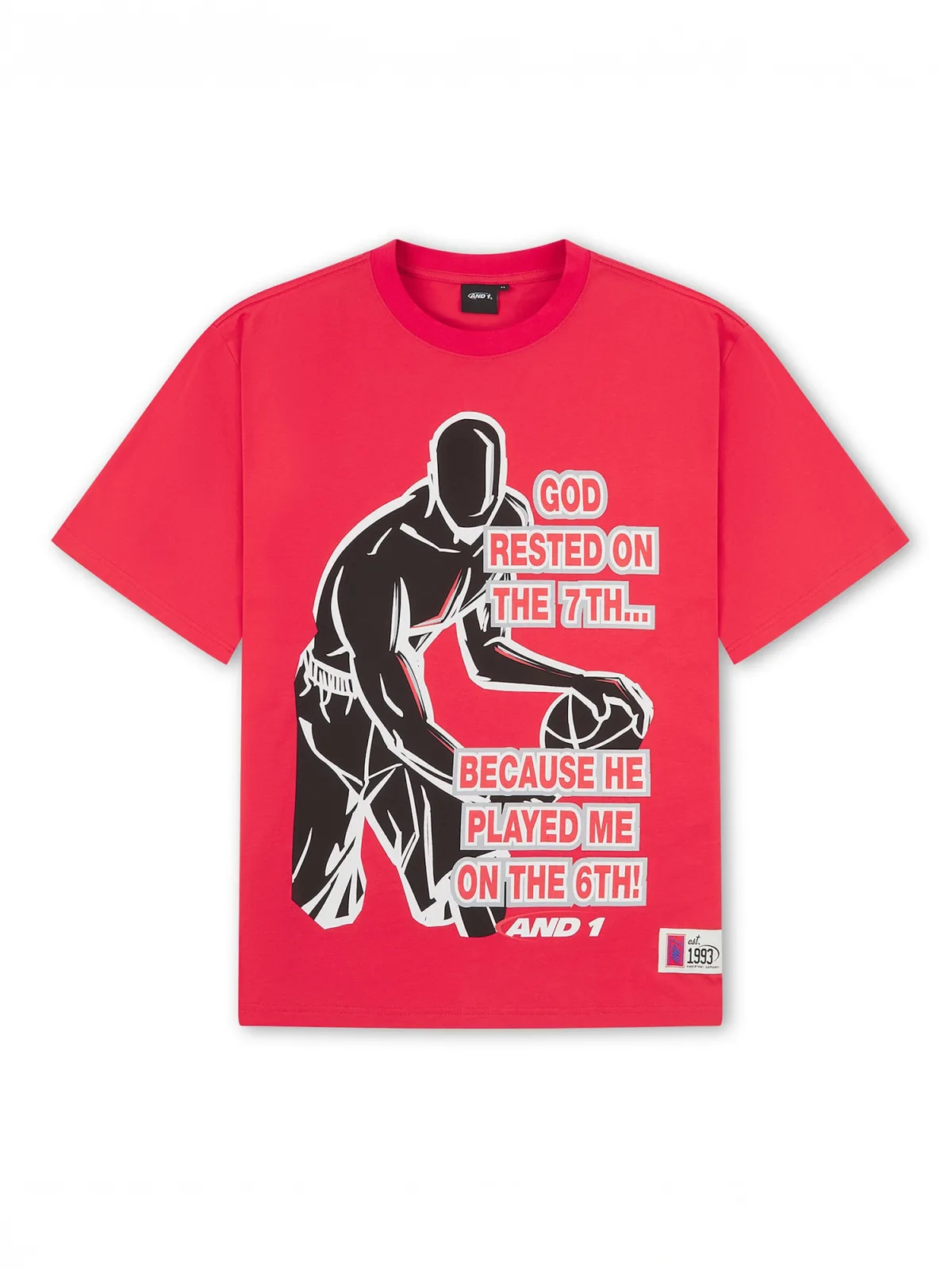 Specificaties: AND1 Shirt ‘Rested On The 7Th Trash Talk’ lichtgrijs / rood / zwart / wit