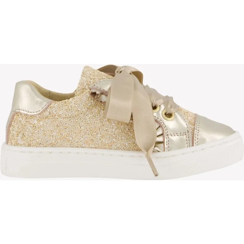 Laat je kleintje stralen met deze prachtige, zandbeige sneakers. De glinsterende stof en elegante veters maken elke stap een feestje. Met een gevoerde enkel en een leren binnenzool, bieden ze ultiem comfort en stijl. De platte rubberen zool zorgt voor een stevige grip, ideaal voor avonturen. Ontdek de perfecte mix van vakmanschap en luxe, speciaal ontworpen voor jouw kleine trendsetter. Verwen je kind met een tijdloos design dat opvalt door de verfijnde details en hoogwaardige materialen. ANDANINES BABY 212755 ZOMER 2025SUPERSTELLAR ID: 14867440107902