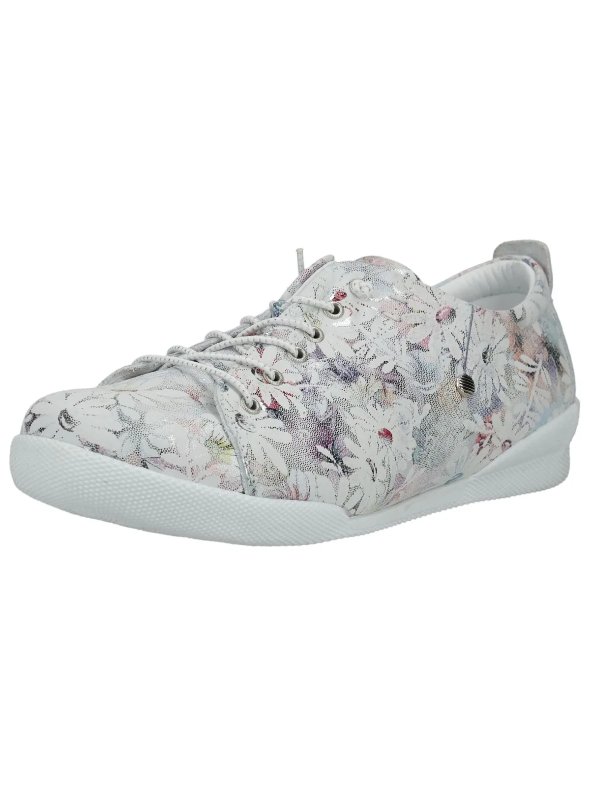 Design: Uitneembare zool; Type sluiting: Snoersluiting; Materiaal: Leer; Motief: Bloemenprint; Materiaal: Glad leer; Schoenneus: Ronde neus; Extra's: Glitterend; Hakhoogte: Platte hak (0-3 cm)