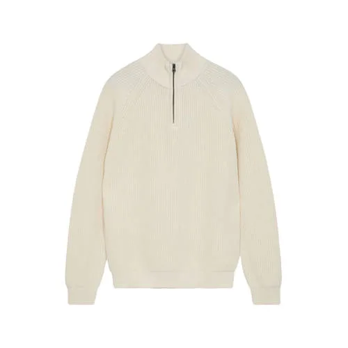 Deze trui van Anerkjendt AKSUNE heeft een regular pasvorm en lange mouwen. De trui is gemaakt van 100% katoen met een opstaande kraag en korte rits, geribde boorden en is grof gebreid.