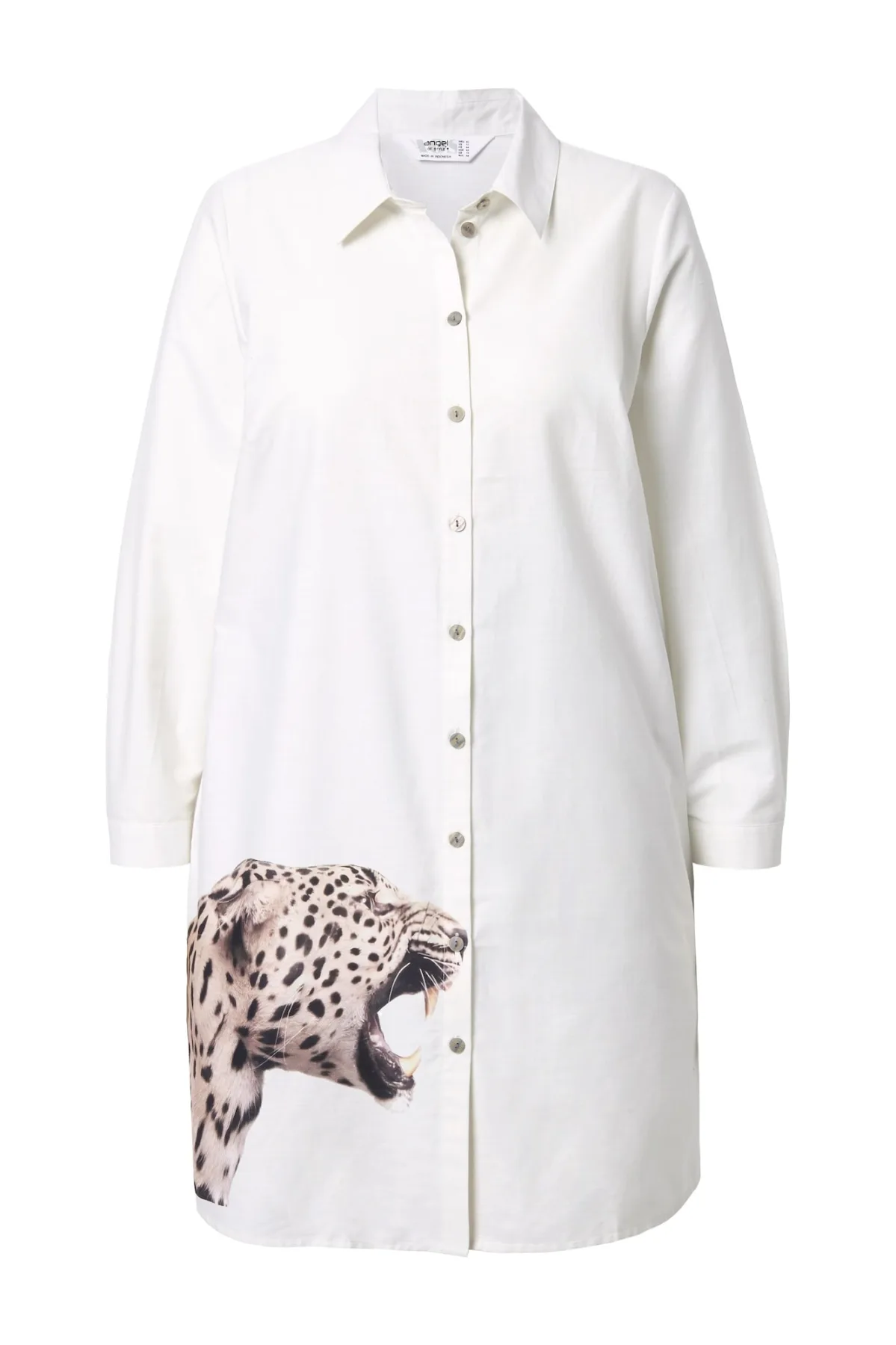 Blouse type: Klassieke blouse; Design: Gevoerde zoom/rand; Type sluiting: Knoopsluiting; Materiaal: Katoen; Motief: Motiefprint; Kraag: Kentkraag; Extra's: Op staal naden; Pasvorm: Losse pasvorm; Armlengte: Lange mouw; Lengte: Lange pasvorm