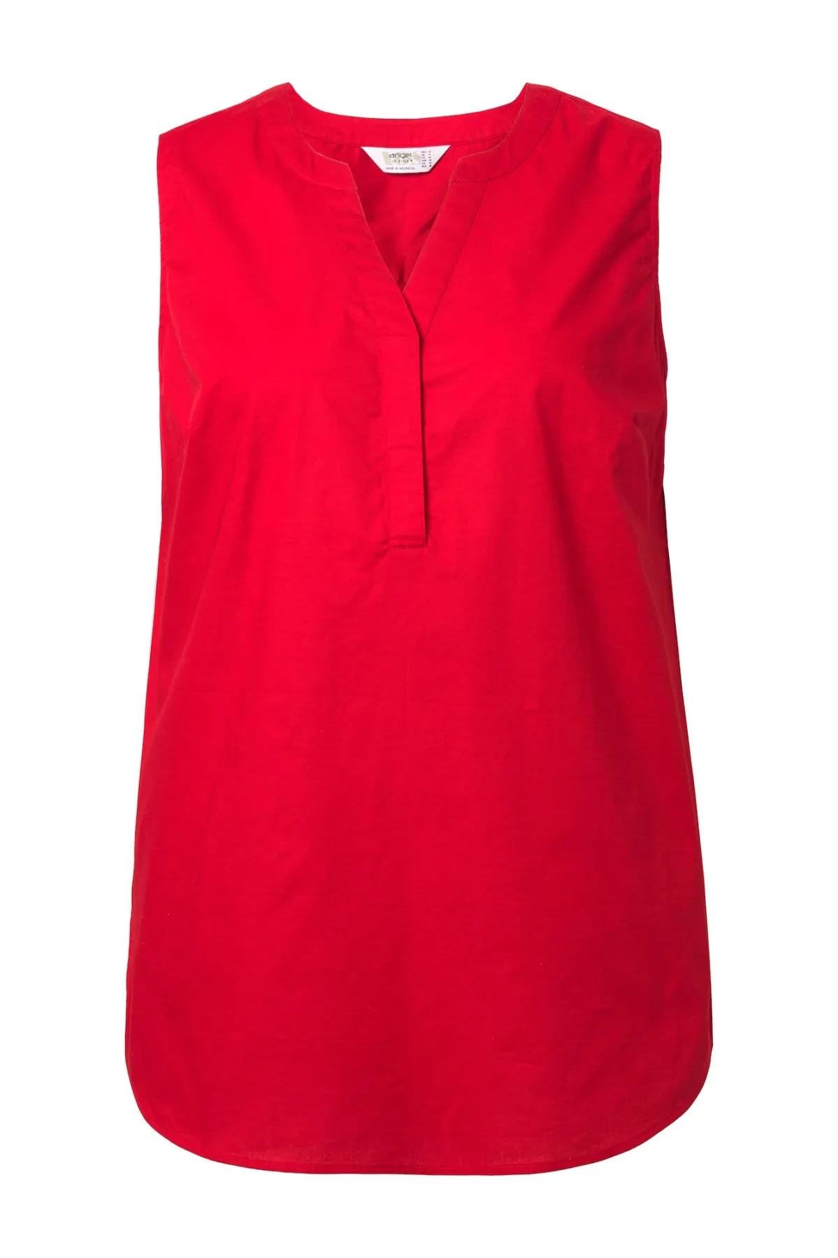 Blouse type: Blouseshirt; Materiaal: Viscose; Motief: Effen; Kraag: Tuniek kraag; Pasvorm: Losse pasvorm; Armlengte: Mouwloos; Lengte: Normale lengte