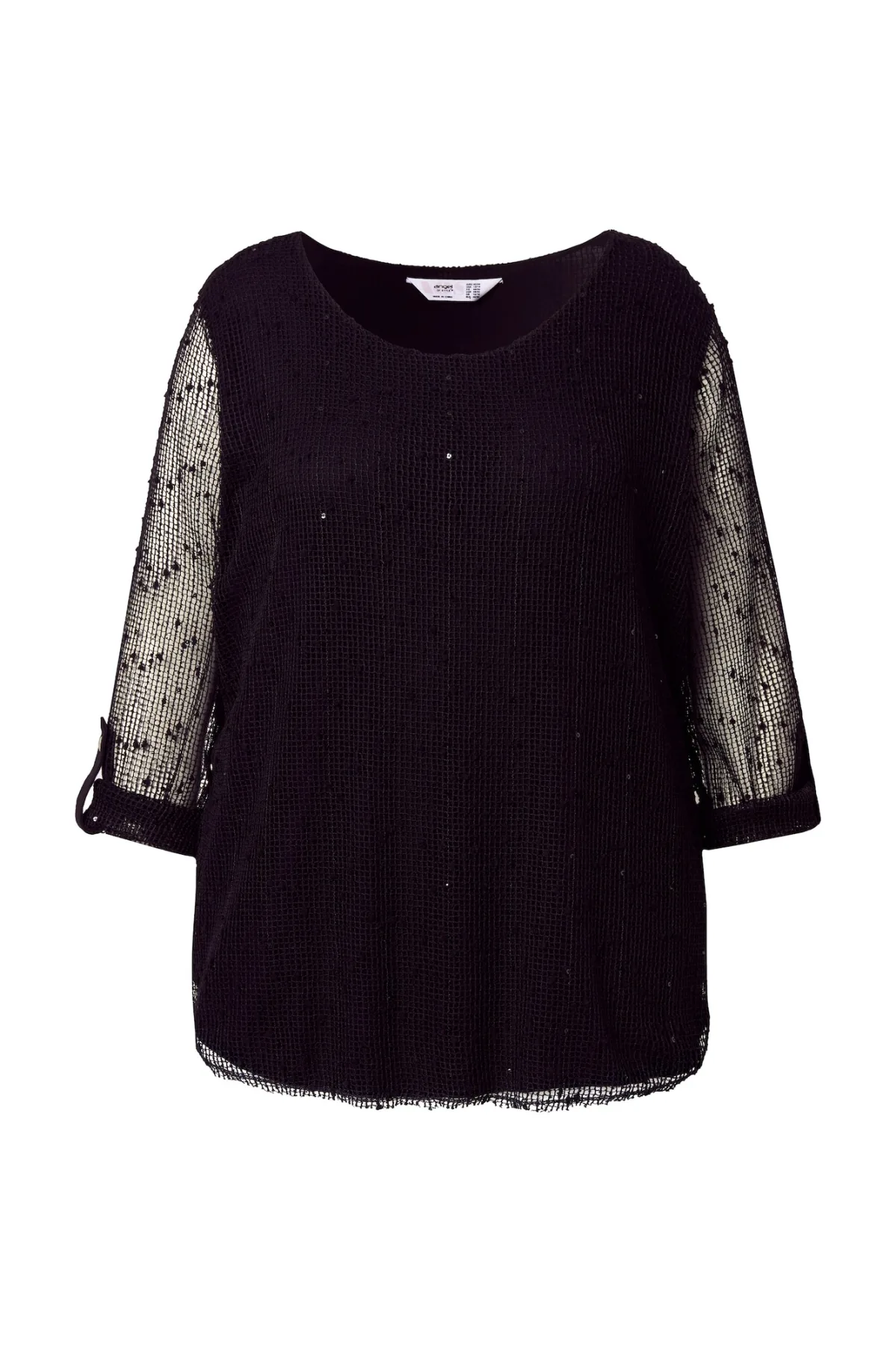 Blouse type: Blouseshirt; Design: Gefranjerde zoom; Motief: Effen; Kraag: Zonder kraag; Details: Franjes, Mesh; Extra's: Zacht opgeruwde binnenkant; Pasvorm: Normale pasvorm; Armlengte: Driekwart mouw; Lengte: Normale lengte