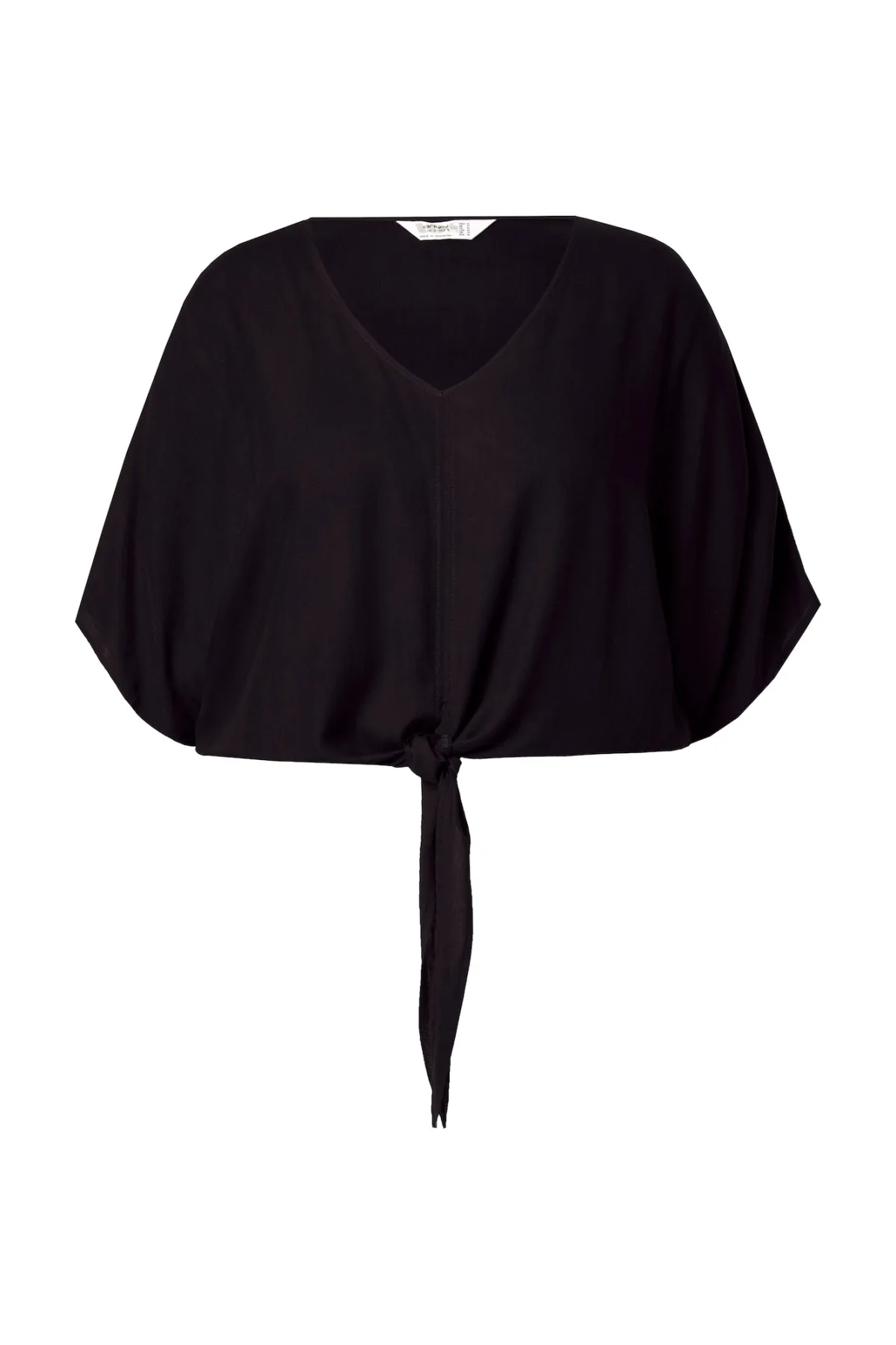 Blouse type: Blouseshirt; Design: Om te knopen/binden; Materiaal: Viscose; Motief: Effen; Kraag: Zonder kraag; Details: Gedrapeerd; Extra's: Op staal naden; Pasvorm: Normale pasvorm; Armlengte: Halve mouw; Lengte: Normale lengte