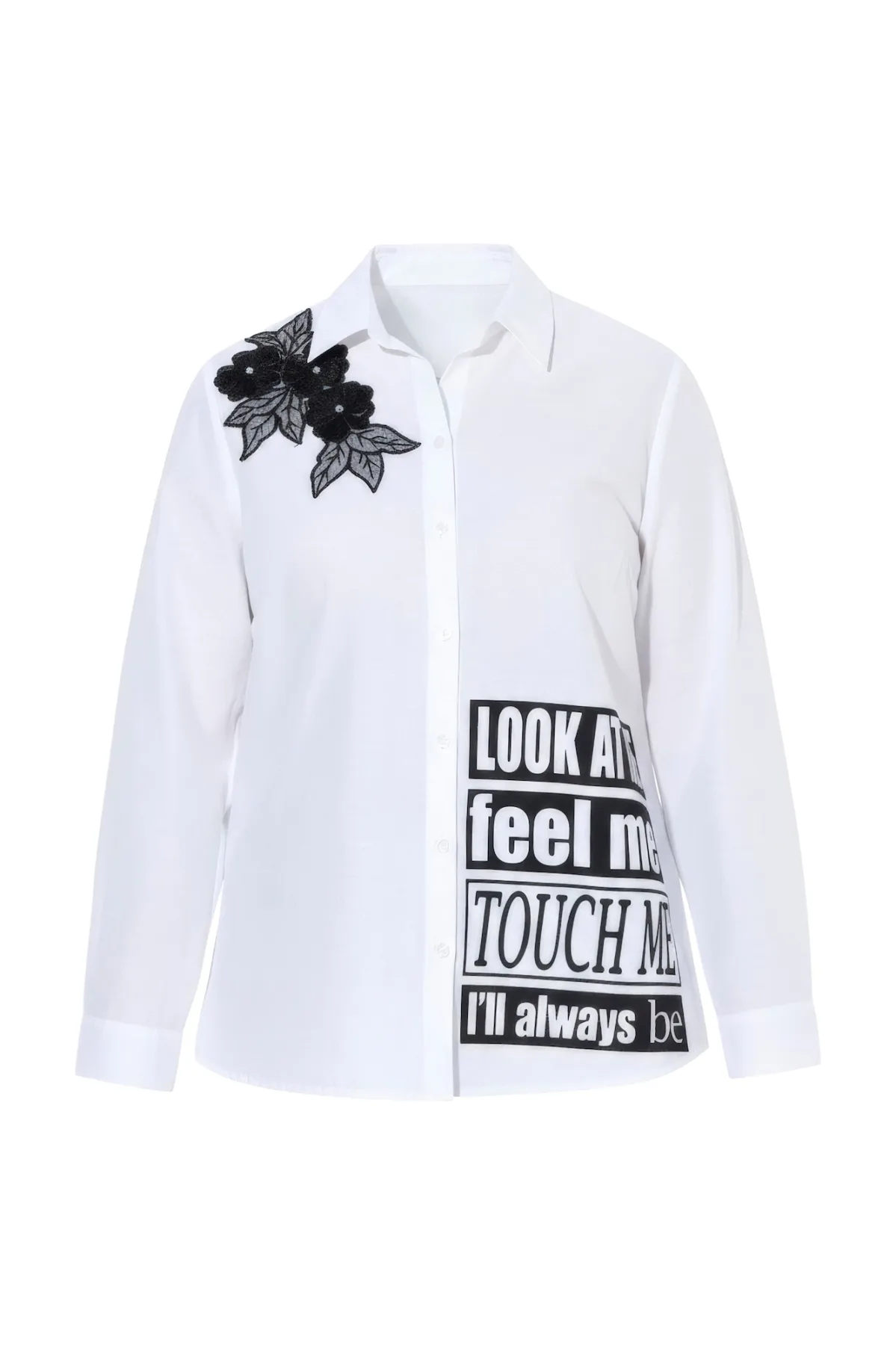 Blouse type: Klassieke blouse; Design: Gevoerde zoom/rand, Knop placket; Materiaal: Katoen; Motief: Tekst print; Kraag: Kentkraag; Pasvorm: Normale pasvorm; Armlengte: Lange mouw; Lengte: Normale lengte