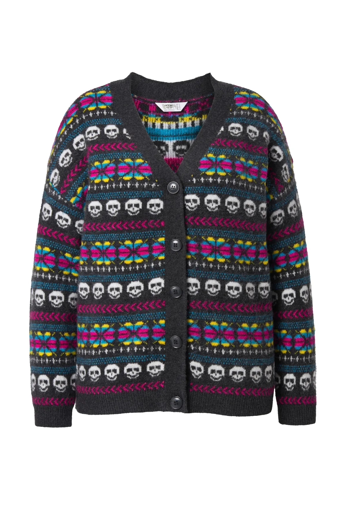 Design: Recht model, Knop placket, Geribbeld gebreid; Type sluiting: Knoopsluiting; Materiaal: Knitwear; Halstype: V-hals; Motief: Winterse print; Extra's: Patroon gebreid, Voelt zacht aan; Pasvorm: Normale pasvorm; Armlengte: Lange mouw; Lengte: Normale lengte