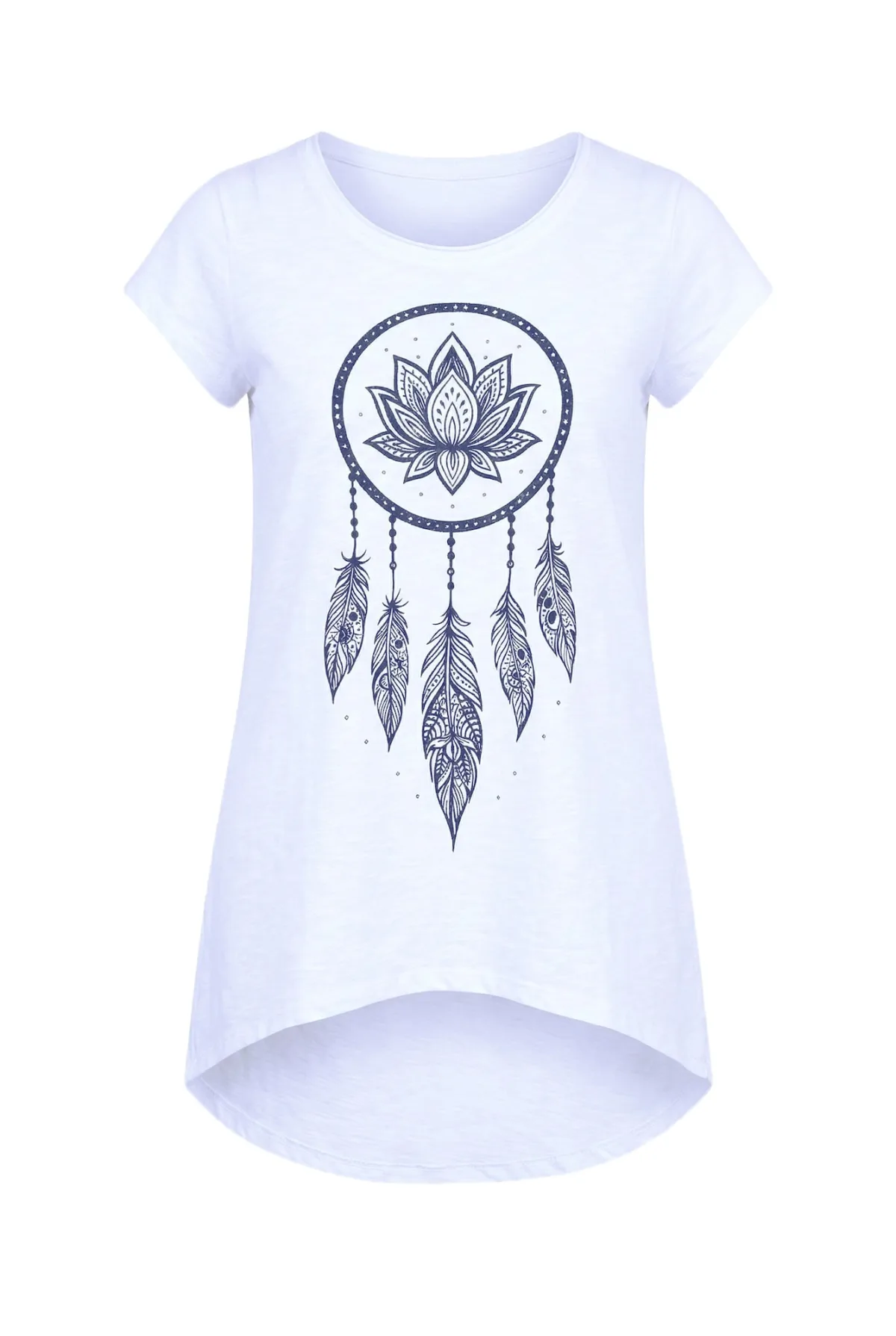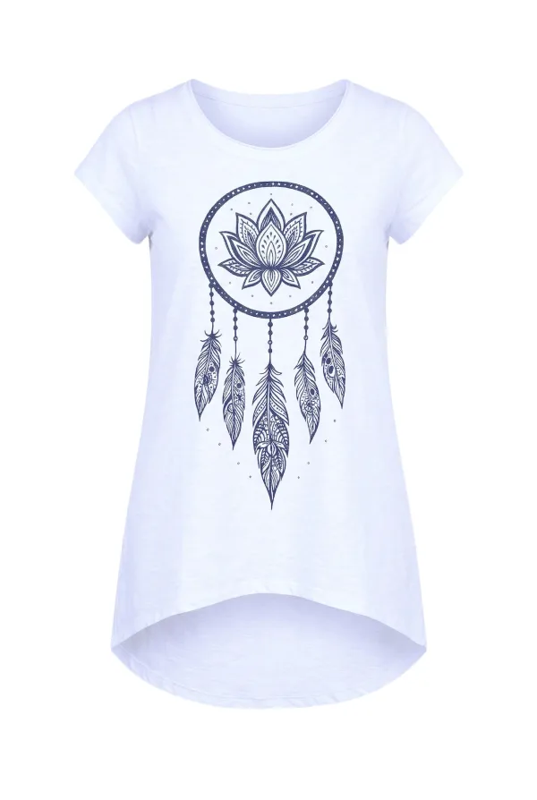 Design: Gevoerde zoom/rand; Materiaal: Jersey; Halstype: Ronde hals; Motief: Motiefprint; Details: Sierstenen; Extra's: Op staal naden, Voelt zacht aan; Pasvorm: Normale pasvorm; Armlengte: Kwartmouw; Lengte: Lange pasvorm