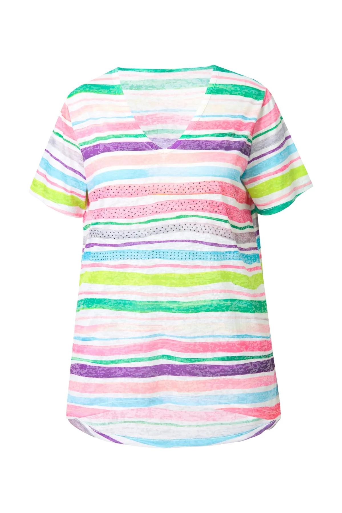 Materiaal: Jersey; Halstype: V-hals; Motief: Gestreept; Pasvorm: Normale pasvorm; Armlengte: Halve mouw; Lengte: Normale lengte