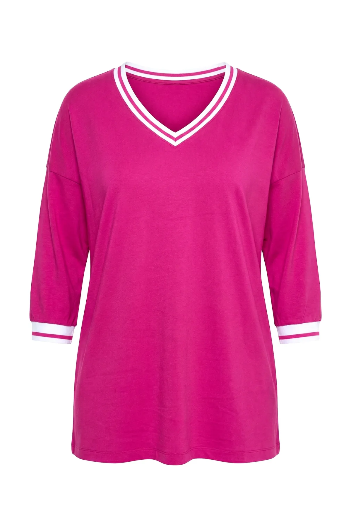 Design: Oversized; Materiaal: Jersey; Halstype: V-hals; Motief: Effen; Extra's: Op staal naden; Pasvorm: Wijde pasvorm; Armlengte: Driekwart mouw; Lengte: Normale lengte