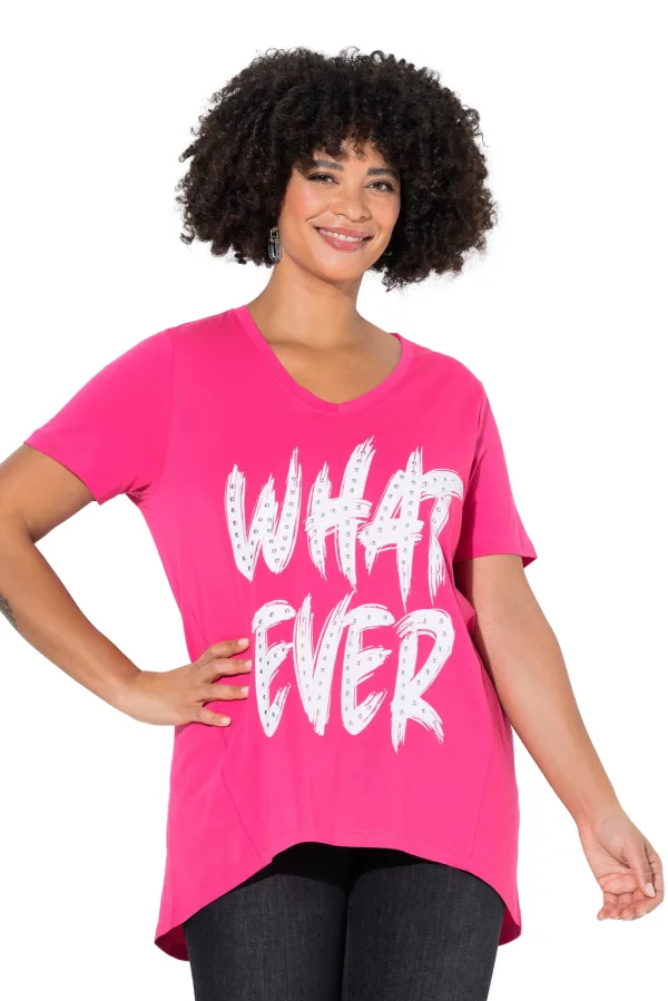 Design: Gevoerde zoom/rand, High-low zoom; Type sluiting: Slip; Materiaal: Jersey; Halstype: V-hals; Motief: Tekst print; Extra's: Op staal naden; Pasvorm: Losse pasvorm; Armlengte: Kwartmouw; Lengte: Lange pasvorm