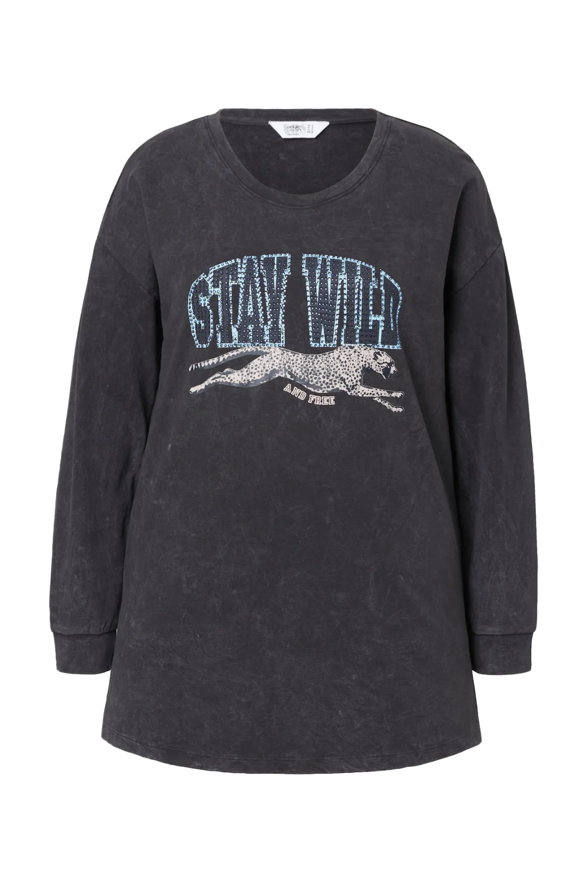 Materiaal: Sweatstof; Halstype: Ronde hals; Motief: Tekst print; Details: Sierstenen; Pasvorm: Normale pasvorm; Armlengte: Lange mouw; Lengte: Normale lengte