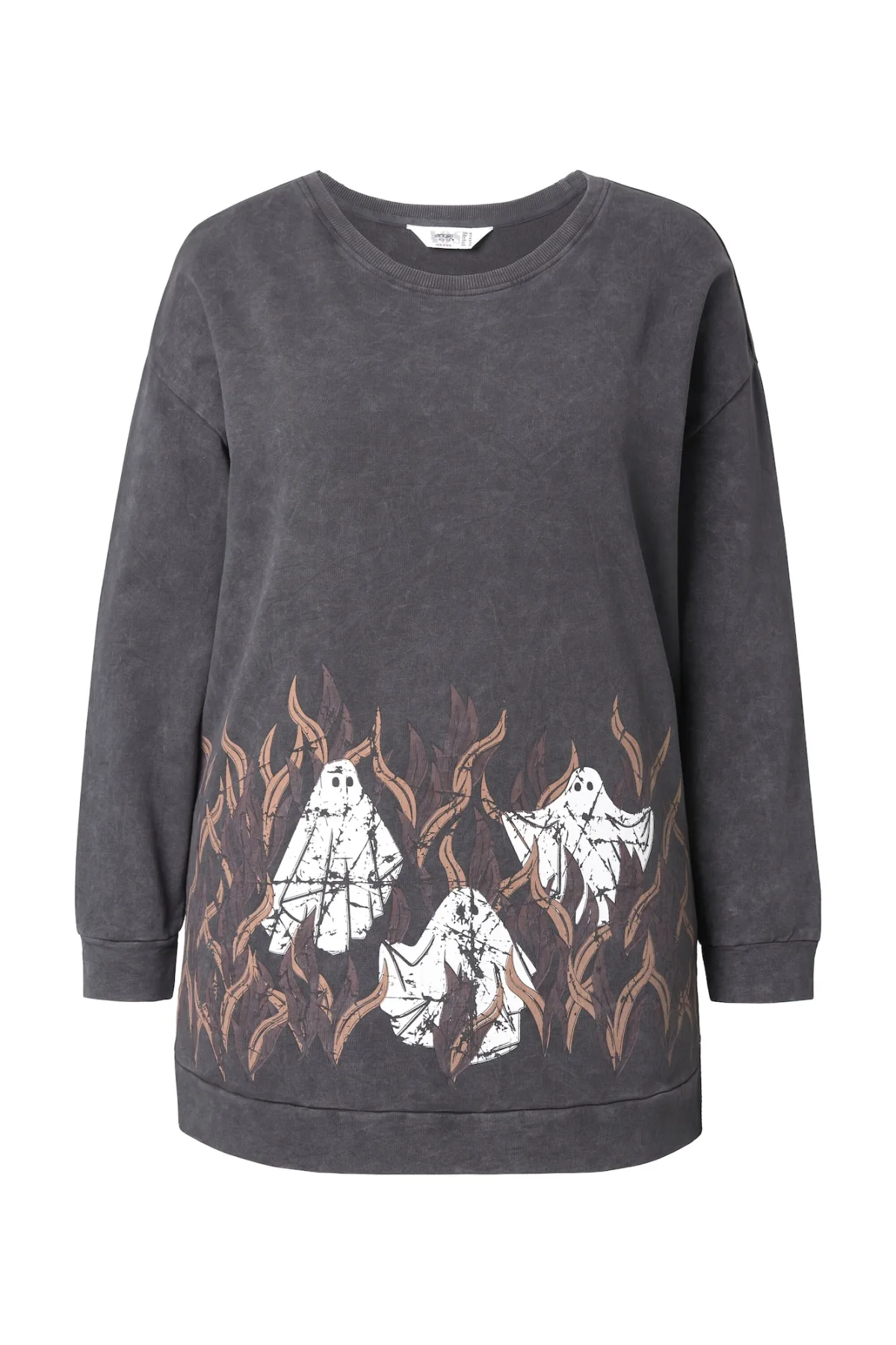 Design: Zijdelingse inkepingen; Materiaal: Sweatstof; Halstype: Ronde hals; Motief: Motiefprint; Extra's: Op staal naden; Pasvorm: Normale pasvorm; Armlengte: Lange mouw; Lengte: Normale lengte