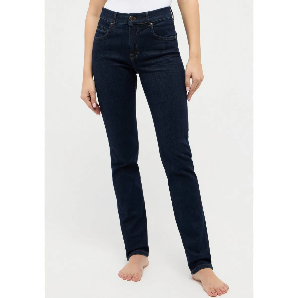 Damesjeans van ANGELS;Katoenmix met stretch;Straight fit;Knoop- en ritssluiting;5-pocketdesign;Labelpatch;Siernaden op de achterzakken;Binnenbeenlengte bij maat 36/32: 83 cm;Bandwijdte bij maat 36/32: 74 cm