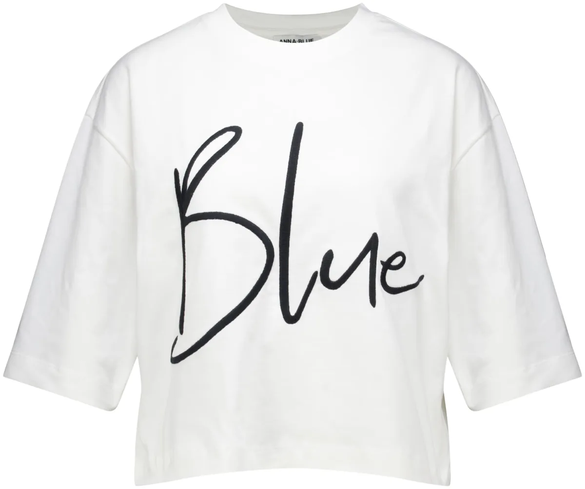 T-shirt Blue van Anna Blue heeft een ronde hals, korte mouwen en een ruimvallende pasvorm met verlaagde schoudernaden. Het grote logo op de voorkant geeft een herkenbaar accent. Draagt comfortabel en combineert makkelijk met een jeans, of onder een blazer voor een nette twist.