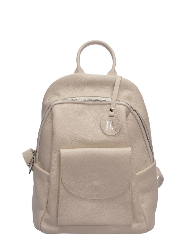 Rugzak 100% koeienleer Bovenste ritssluiting Voor- en achterzakken met ritsen Afmetingen: 35x28x12 cm Handvat: 20 cm Schouderbanden 2x80 cm