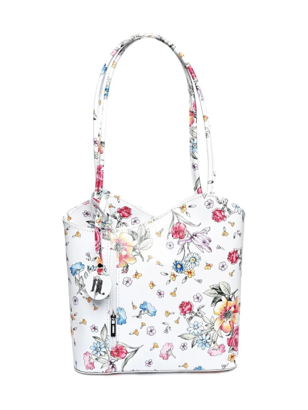 Totebag / Rugzak 100% koeienleer Gesloten sluiting Voorste ritszak Binnenste ritszak Afmetingen: (L): 29x28x9 cm Handvat: 54 cm Schouderband: 90x2 cm