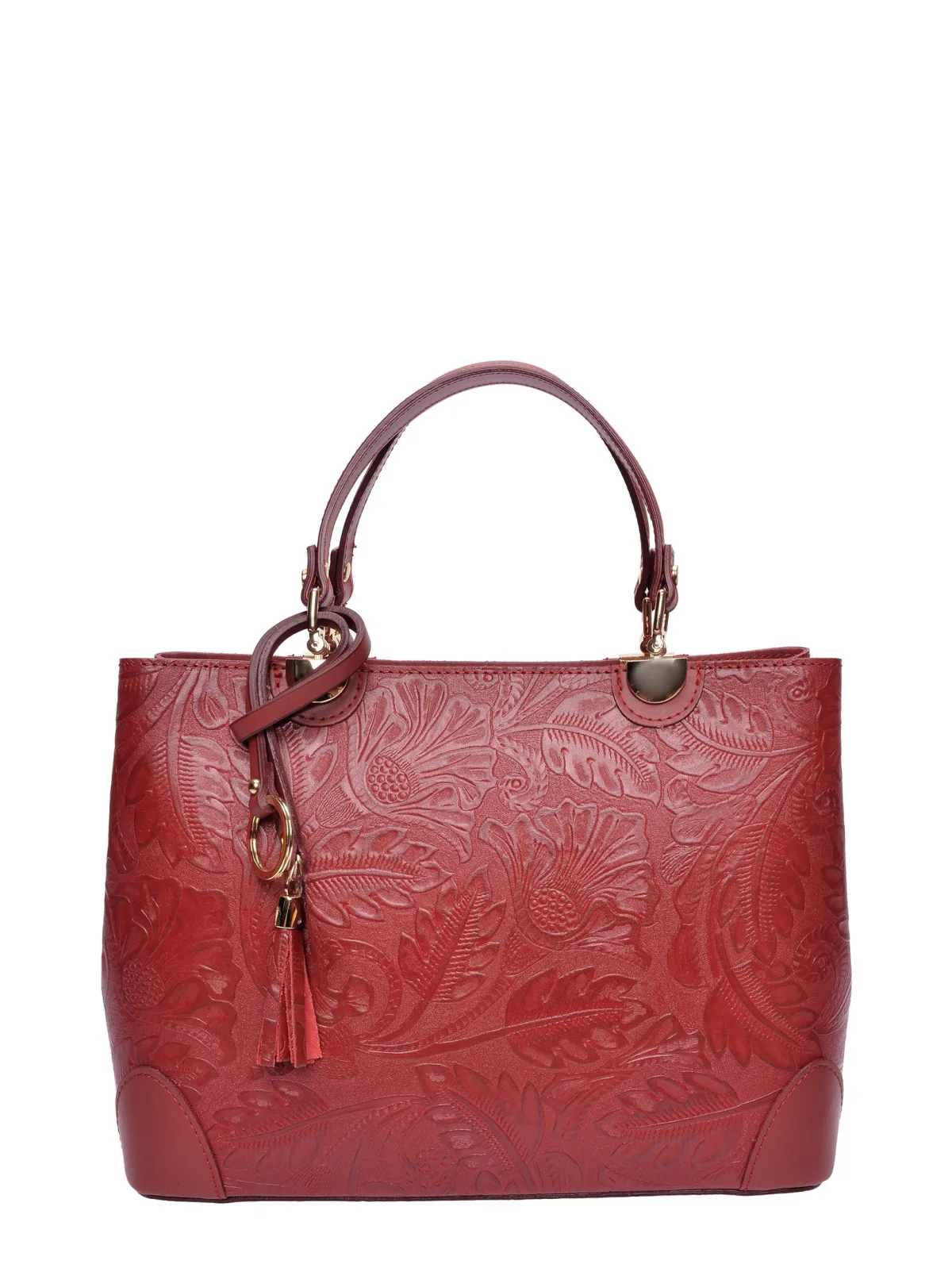 Draagtas 100% koeienleer Bovenste ritssluiting Twee interne ritszakken, zij- en middenvakken Twee binnenste compartimenten Handvat: 34,5 cm Schouderriem: 120 cm verstelbaar en afneembaar
