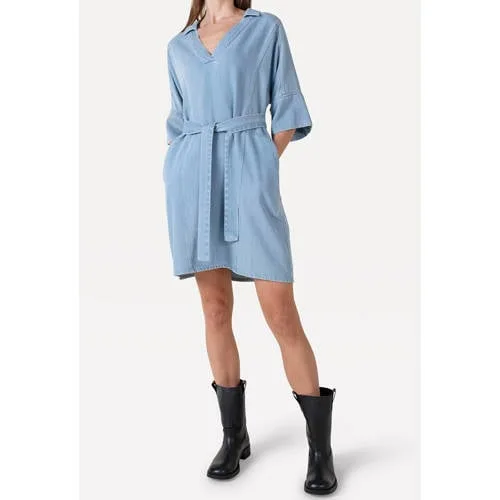 Fris, luchtig en toch gekleed, deze lichtblauwe denim jurk van Another-Label is een praktische basic voor je voorjaarsgarderobe. De jurk heeft de look van denim in een zachte, soepele kwaliteit en valt kort op het bovenbeen. De halve, wijde mouwen en V-hals met strikdetail zorgen voor extra detail bij de hals zonder dat het geheel druk oogt.Details die het verschil maken Gemaakt van 100% lyocell, een zachte en soepele stof die prettig aanvoelt op de huid Lichtblauwe denimlook kleur die makkelijk combineert met sandalen, sneakers of laarsjes Korte lengte die net boven het kniegewricht valt, ideaal voor het voorjaar en de zomer V-hals met striksluiting voor een subtiel accent en verstelbare halsopening Halflange, wijde mouwen voor een luchtig silhouet en extra bewegingsvrijheid Effen design zonder zakken voor een rustige, moderne uitstraling Onderdeel van de Studio collectie, met aandacht voor pasvorm en draagbaarheidVoor relaxte dagen en nette momentenDeze korte denimlook jurk draag je net zo makkelijk naar je werk als tijdens een vrije dag. Met sneakers en een crossbody tas heeft de jurk een meer ontspannen stijl. Met een nette schoen en een subtiele ketting sluit dezelfde jurk ook goed aan bij een verzorgde outfit.Another-Label, eigentijds en doordachtAnother-Label staat bekend om moderne items die je het hele seizoen door kunt dragen. De ontwerpen zijn clean, met doordachte details en fijne materialen. Zo voeg je eenvoudig goed combineerbare en draagbare favorieten toe aan je kledingkast.Een veelzijdige jurk, passend op momenten waarop je iets luchtigs en verzorgd wilt dragen.