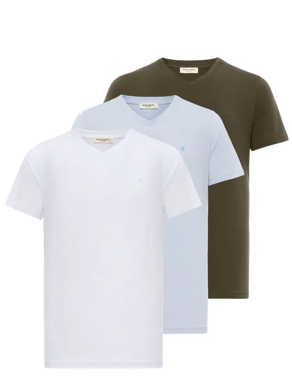 Design: Recht model; Type sluiting: Gesloten; Materiaal: Jersey; Halstype: V-hals; Motief: Effen; Extra's: Voelt zacht aan; Pasvorm: Normale pasvorm; Aantal: 3 Pack; Armlengte: Kwartmouw; Lengte: Normale lengte